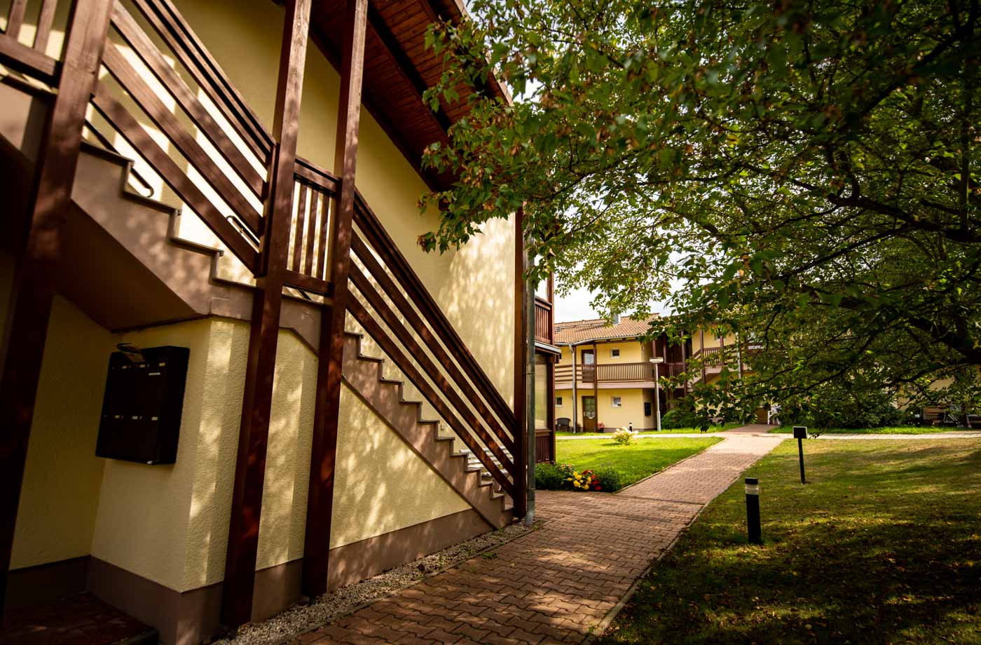 Eingebettet am Fuße des Fronbergs liegt unsere Wohnanlage im wunderschönen kleinen Örtchen Schreiersgrün im Tal der Treba.